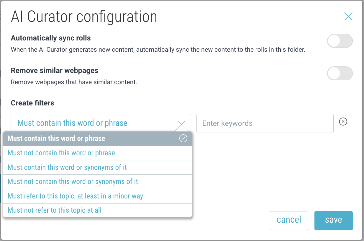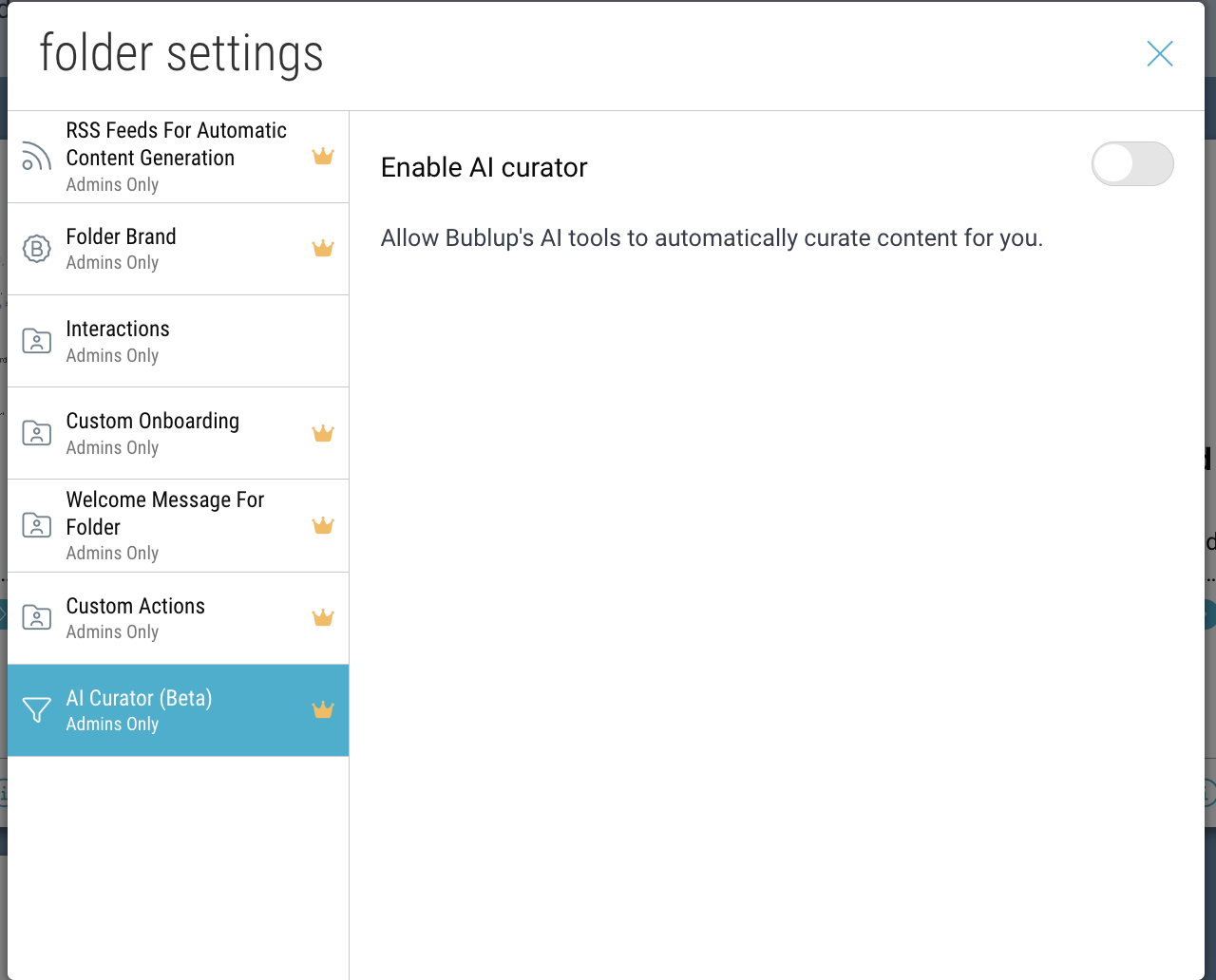 Use Bublup’s AI Curator, in combination with RSS Feeds, to automatically curate content whenever new content is added to your feed—no need to do it manually. This helps keep your feed spaces relevant and eliminates unwanted content. This feature is available to Business and Enterprise plans.