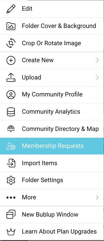 - To review and approve membership requests, go to the community ☰ menu and click “Membership Requests”.