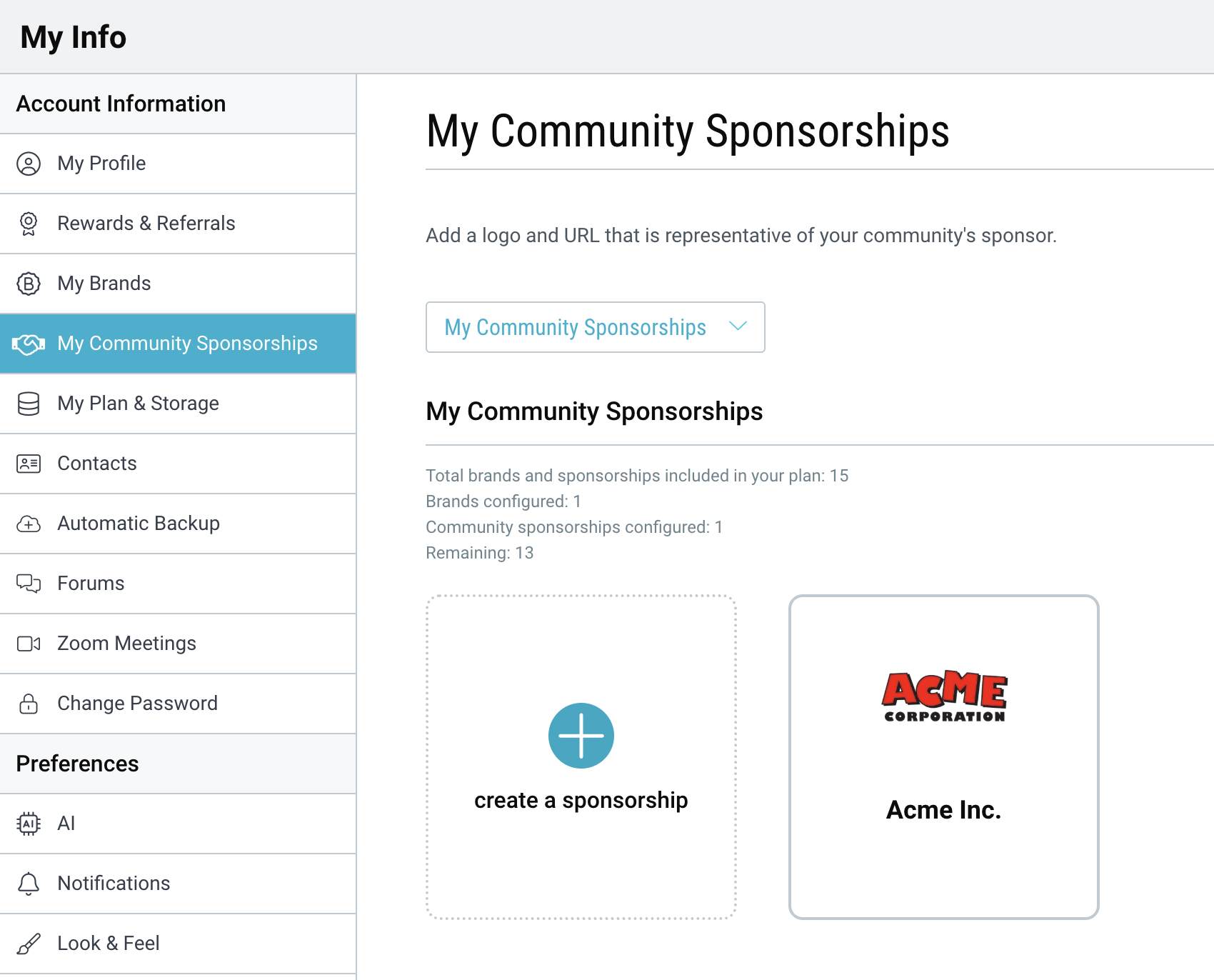 Showcase sponsorship brands directly within your Community space and subspaces.