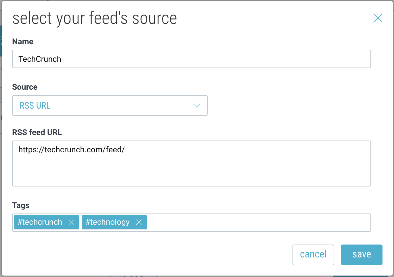 3. If you selected “RSS“, copy and paste a link to the RSS feed source of your choice.