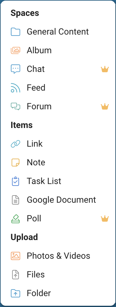 1. Use the + button and select the “Feed” option under “Spaces”. Then name your space.